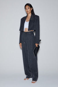 With a slightly tapered ankle and articulated at the knee, this high-waist charcoal trouser spotlights clear bead crystal hotfix. It is fastened with side slash and back welt pockets and fastened by a zip fly with a hook-and-bar closure. - side slash & back welt pockets - zip fly, hook-and-bar closure - body composition: 100% wool - lining: 100% viscose - model is 5'10.5" and wears a size 4 - made in china - 1WC1254695010 composition Body/Exterieur: 100%WOOL (OVIS ARIES ARIES) Lining: 100%VISCOSE