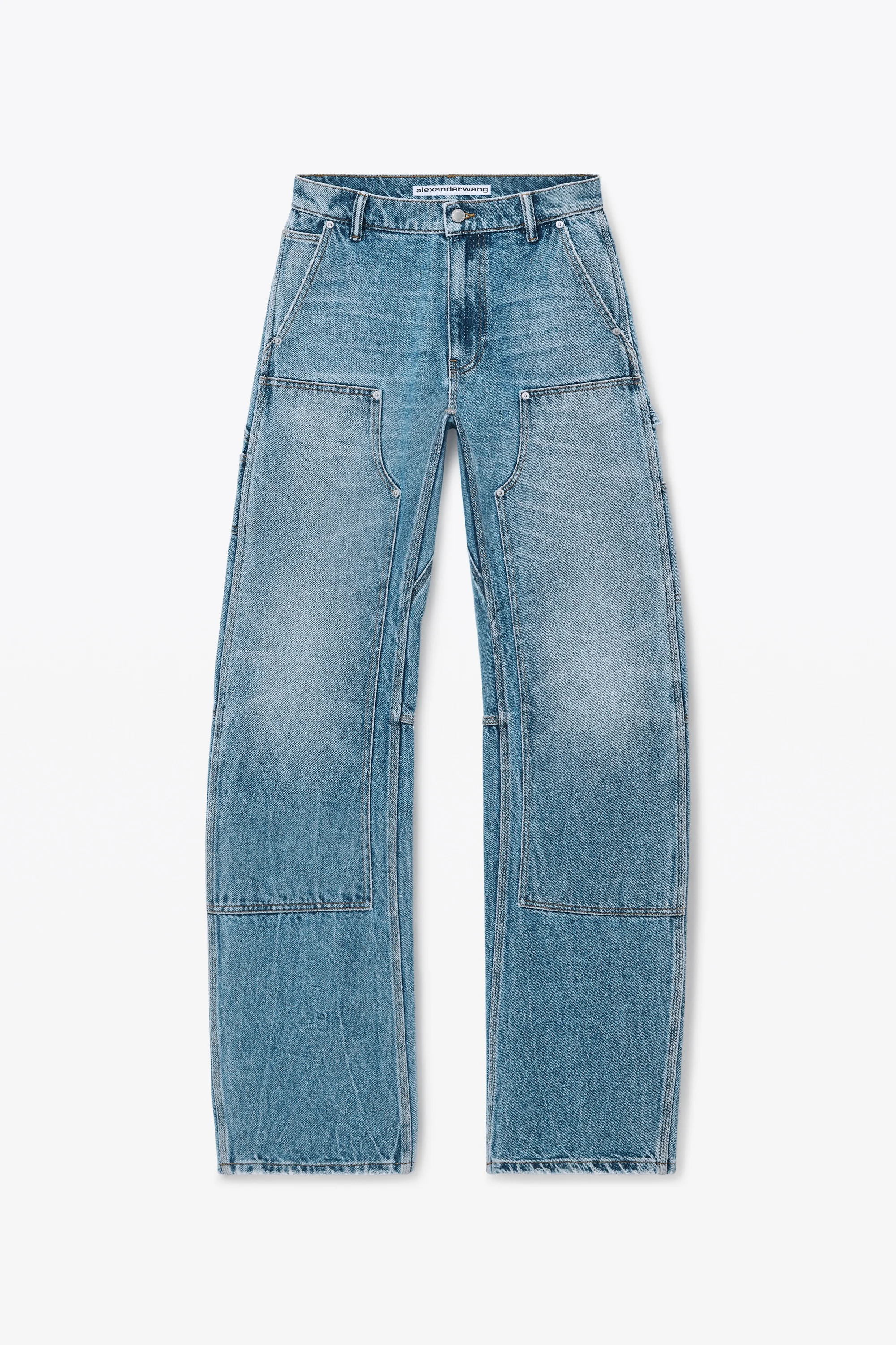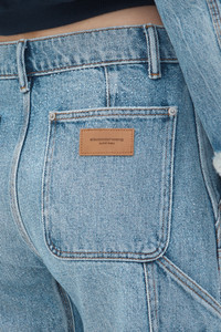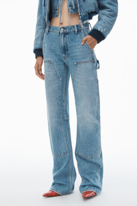 Beaded hotfix elevates this indigo workwear pant, characterized by a hammer loop, carpenter styling at the front, and whiskering at the front and back for a distressed effect. - belt loops - five-pocket style - zip fly, button closure - body composition: 100% cotton - model is 5'10.5" and wears a size 27 - made in china - 1WC1254608407A composition Body/Exterieur: 100% COTTON