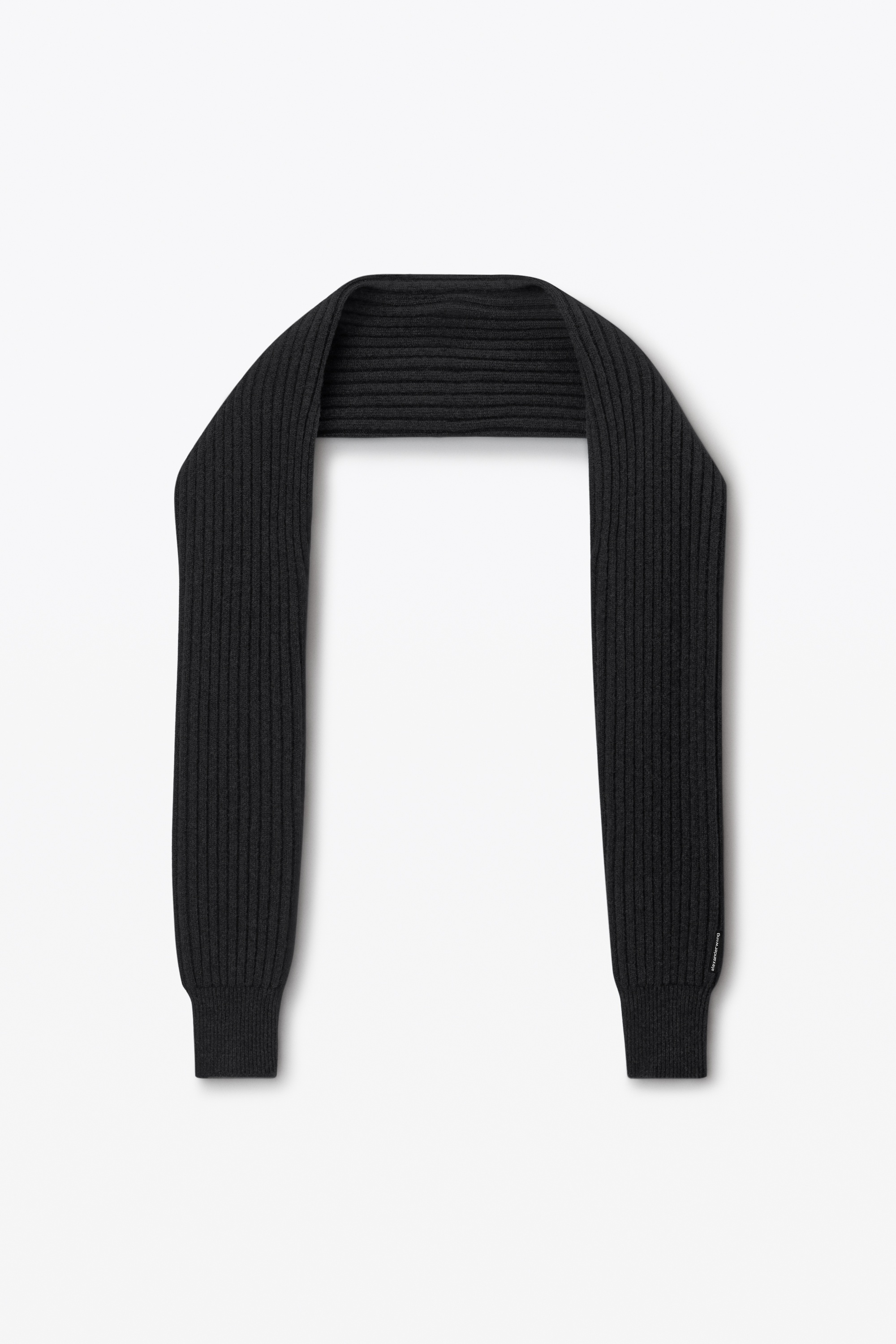 This Italian-crafted hybrid black ribbed scarf showcases a bolero-style construction with sleeves. - body composition: 80% wool/20% nylon - made in italy - 1KC1259090001 composition Body/Exterieur: 80%WOOL (OVIS ARIES ARIES)/20%NYLON