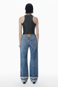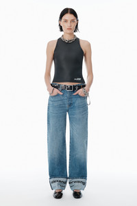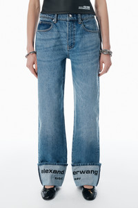Logo embroidery at the cuffs defines these mid-rise denim jeans. The straight-leg cut features a medium indigo wash. - five-pocket style - zip fly - 100% cotton - model is 5'10 and wears a size 27 - made in turkey - 4DC3254810473 composition Body: 100%COTTON