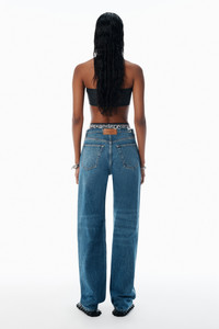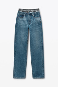 Pre-styled underwear detailing and a frayed waistband define the look of these indigo jeans with a stacked wide-leg. - zip fly, hook-and-bar closure - five-pocket style - body composition: 100% cotton - trim: 80% polyamide/20% elastane - trim 2: 56% polyamide/32% polyester/12% elastane - model is 5'10" and wears a size 27 - made in turkey - 4DC3254752473 composition Body: 100%COTTON Trim: 80%POLYAMIDE/20%ELASTANE Elastic: 56%POLYAMIDE/32%POLYESTER/12%ELASTANE