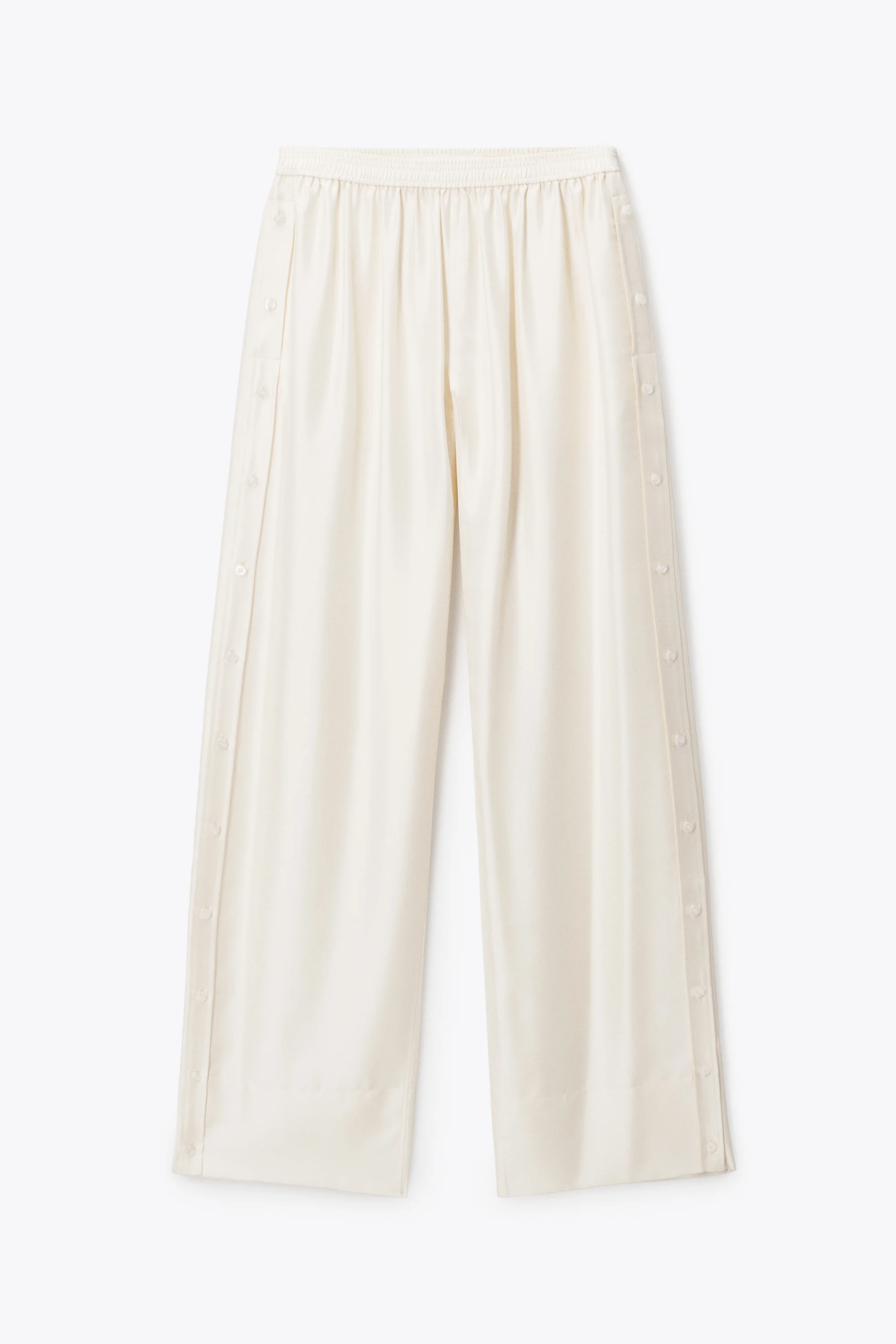 Mid-rise pant rendered in ivory heavy silk twill with elegant drape and subtle structure. Designed with semi-functional side-seam plackets and slash pockets, it’s finished with a welt pocket at the back and tonal alexanderwang logo embroidery. - side-seam slash and back welt pockets - body composition: 100% silk - model is 5'11" and wears a size s - made in China - 1WC4254931106 composition Body: 100%SILK