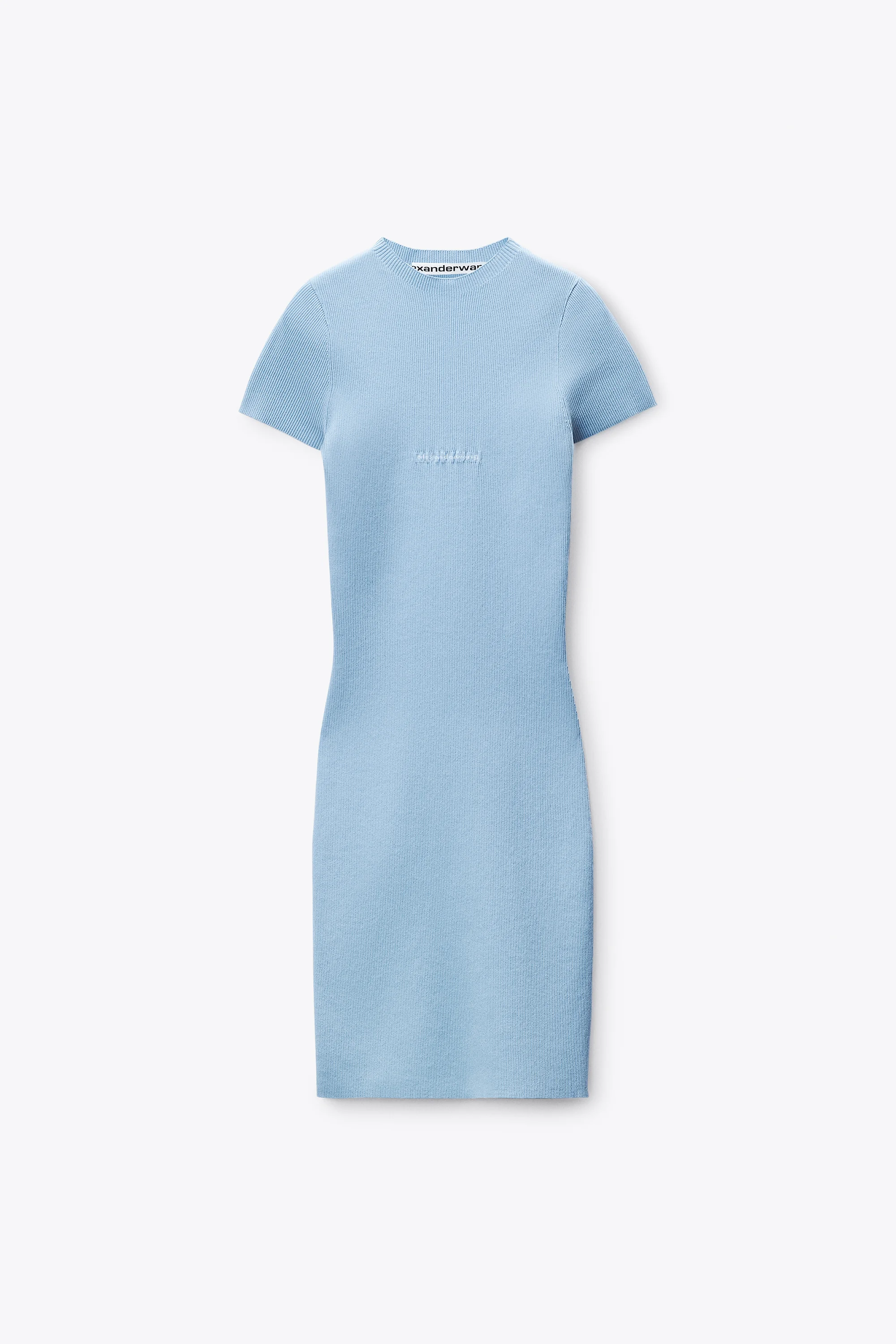 a mini dress that does not play it safe. jacquard branding and a tight, clean silhouette deliver confidence without compromise. - light blue - body composition: 100% polyamide - model is 5'11" and wears a size s - made in china - 1KC2266079400 composition Body/Exterieur 100.0%: 89%POLYAMIDE/11%ELASTANE