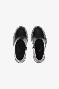 Black almond toe evening ankle boot in luxe calf leather with crystal bombe welt - heel height: 10.5cm - semi shine finish - upper and outsole: 100% cow leather - lining: 100% sheep leather - made in china - 30423B001001
