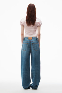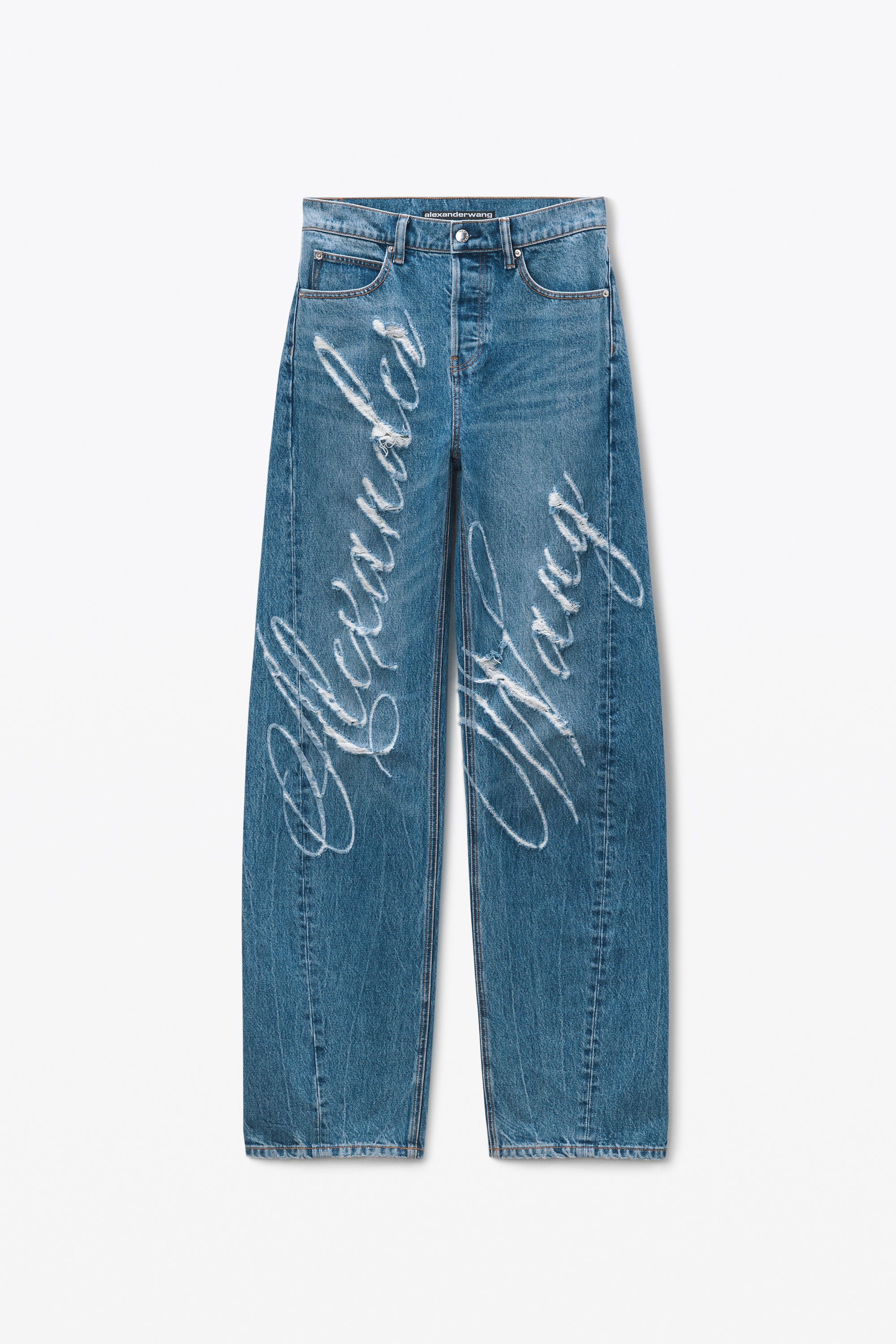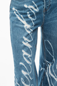 A laser-distressed logo resulting in a threadbare-effect design highlights a cursive logo motif on these balloon jeans. Cut in a mid-rise wide leg, twisted side seams enhance the rounded silhouette. - belt loops - five-pocket style - zip fly, button closure - body composition: 100% cotton - oversize fit, hits at hip - made in China - model is 5’11 and wears a size 27 - 4DC3244412473 composition Body: 100%COTTON