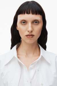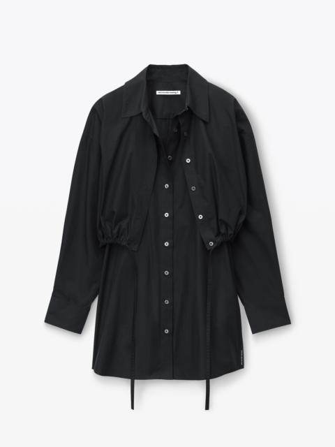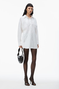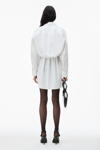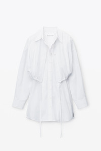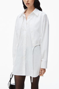 White double layered button-up shirt dress in compact cotton with self tie at waist line - loose fit - hits at high thigh - woven label at side seam - unlined - composition: 100% cotton - made in china - model is 5'11" and wears size s - 4WC1246245100 composition Body: 100%COTTON