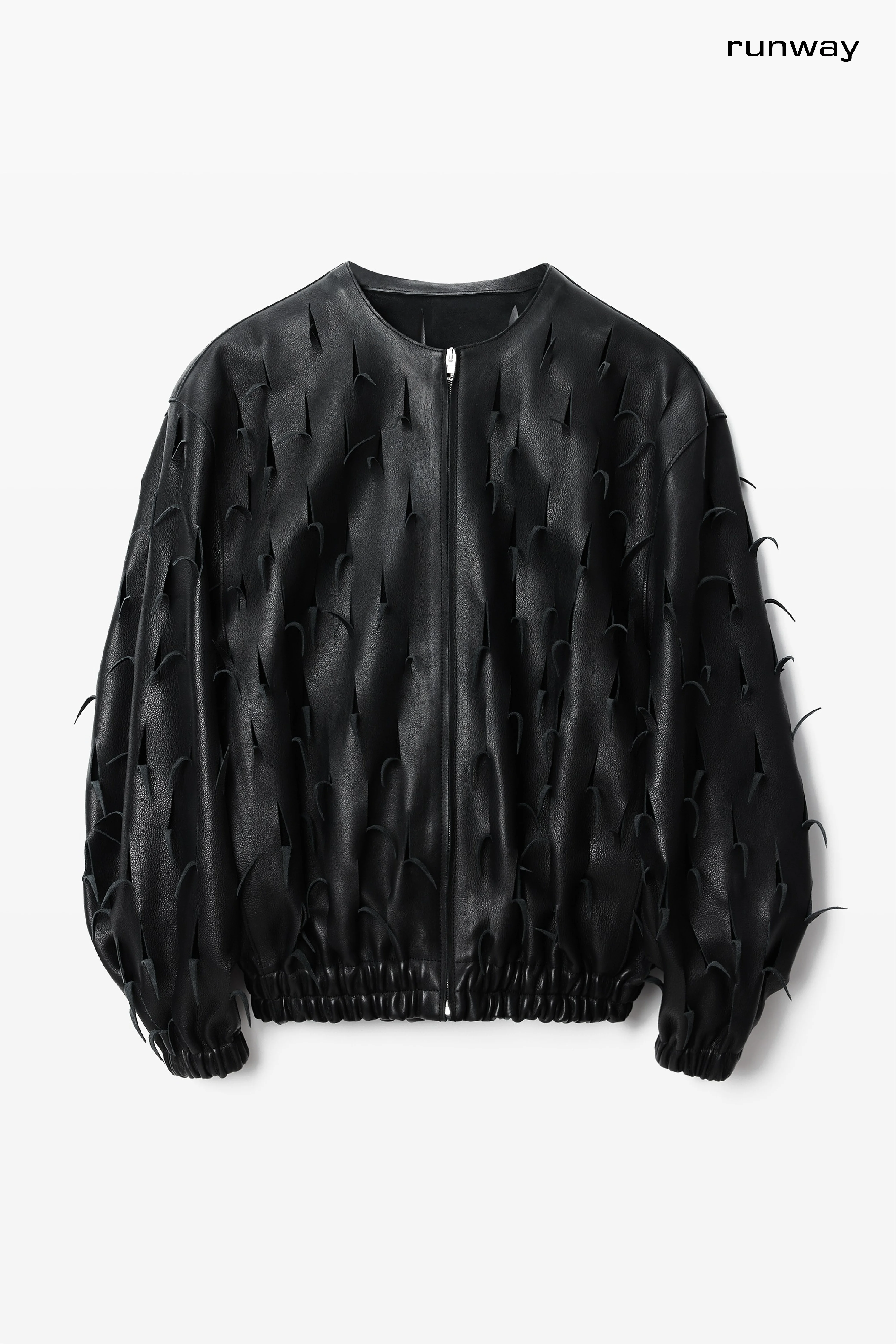 a classic leather bomber jacket reworked with oversized volume and all over cut out details. exposed, directional and unapologetic. - Black - side seam pockets - unlined - body composition: laser cut calfskin leather - Made in India - 1WC2262767001 composition Body Face: 100%LAMBSKIN (OVIS ARIES ARIES) Body Back: 100%POLYESTER Lining: 100%VISCOSE
