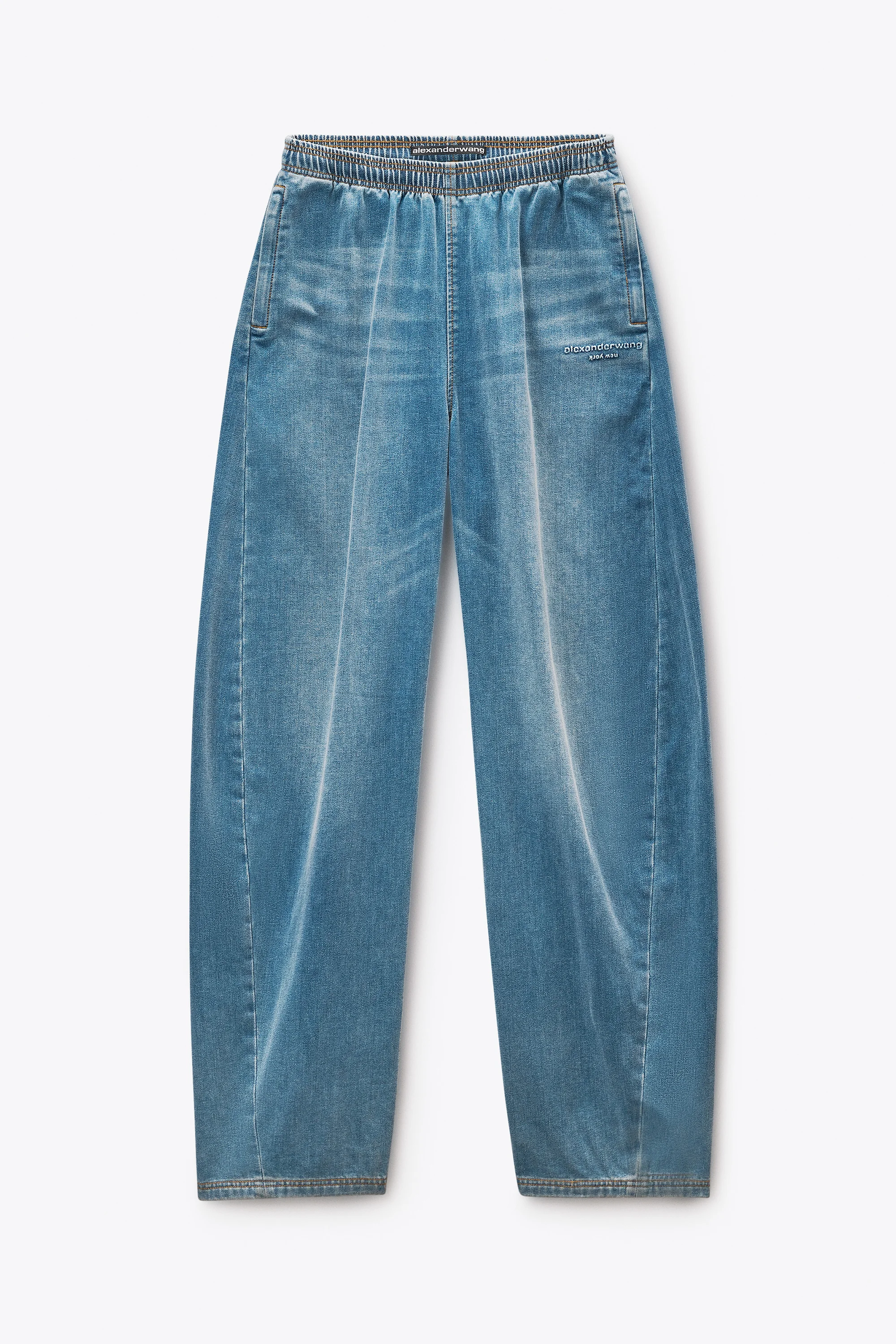 Sweatpant in washed light blue brushed indigo denim with an elasticated drawstring waist and silicone-filled classic logo at the front. Designed with an exaggerated oversized fit and wide rounded volume, it sits at mid rise and stacks at the hem. - drawstring elastic waistband - oversize, mid-rise fit - body composition: 62% cotton / 38% polyester - model is 5'11" and wears a size S - 100% leather - made in China - 4DC4254886458A composition Body: 62%COTTON/38%POLYESTER