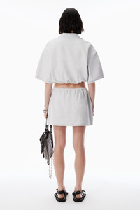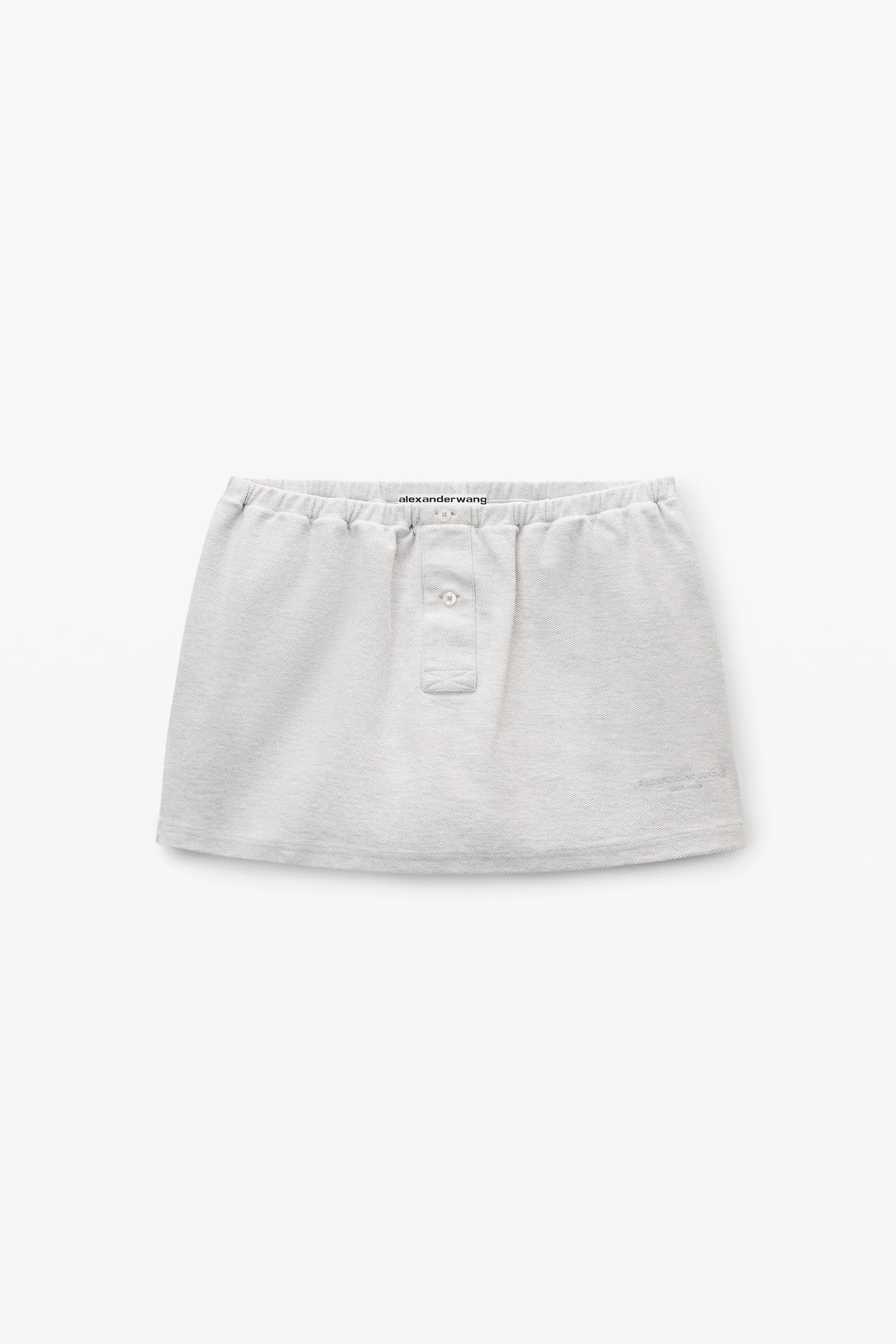 this miniskirt in a cotton-blend heather grey features a deconstructed polo placket at the front with a tunnel elasticated waistband. side slits and a stepped hem accentuate the silhouette. - tunnel waistband - body composition: 98% cotton/2% elastane - made in portugal - model is 5'11" and wears a size s - 4CC3255326050 composition Body: 98%COTTON/2%ELASTANE