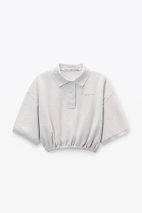 this relaxed-fit cotton-blend polo in heather grey features a gathered hem at the waist with an adjustable drawcord. a rib collar and logo embroidery at the chest complete the style. - polo collar - short sleeves - body composition: 98% cotton/2% elastane - made in portugal - model is 5'11" and wears a size s - 4CC3251030050 composition Body: 98%COTTON/2%ELASTANE