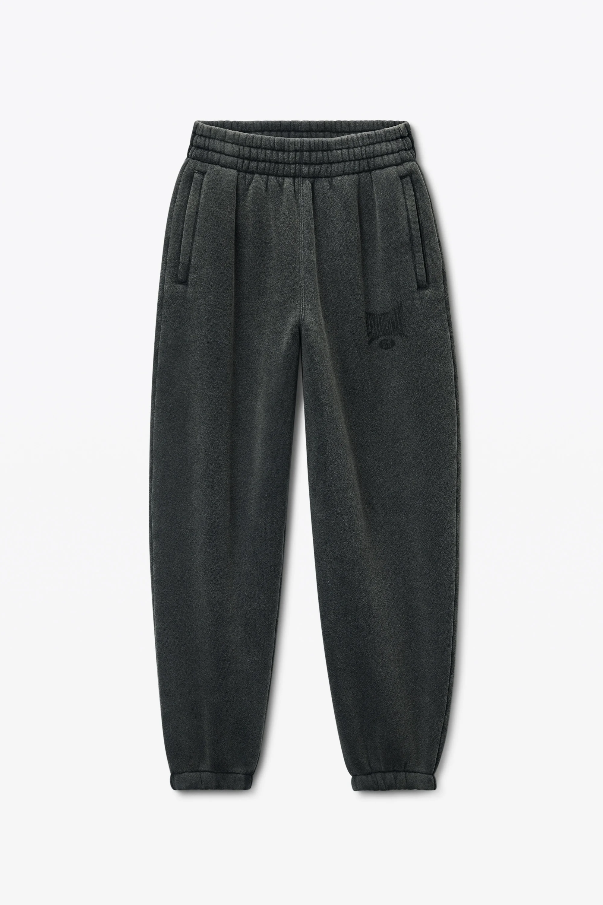 These faded black sweatpants in heavy cotton terry feature logo detailing at the hip, side-seam pockets, and an elasticated waistband. - elasticated waistband - side-seam pockets - body composition: 75% cotton/25% polyester - made in Hong Kong - model is 5'10" and wears a size s - 4CC2254420020A composition Body: 75%COTTON/25%POLYESTER