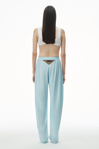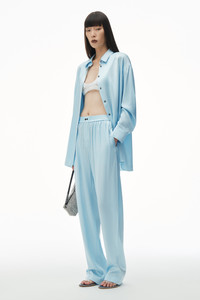 A tulle V logo cutout articulates this silk charmeuse boxer-style loungewear pant in blue. With an elasticated waistband, decorative buttons accent this casual, pajama-style silhouette. - two-way zip closure - body composition: 100% silk - material 2: 100% polyester - made in china - model is 5’10 and wears a size XS - 1WC2244723456A composition Body/Exterieur: 100%SILK Combo 1/Combinasion 1: 100%POLYESTER Fish & Wildlife 100.0%: 100%MOP BUTTON/PINCTADA MAXIMA/C/O AU, WILD