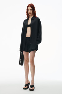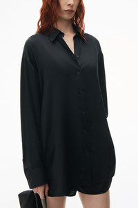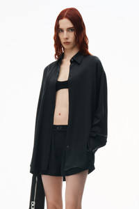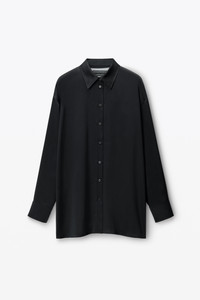Cut in a boxy, oversized fit, this slinky silk charmeuse shirt in black flaunts a logo-embroidered tulle cutout at the back. A shirt collar, front button placket, and cuffs complete this style. - oversize - shirt collar - button-front closure - body composition: 100% silk - material 2: 100% polyester - made in china - model is 5’10 and wears a size XS - 1WC2241897001 composition Body/Exterieur: 100%SILK Combo 1/Combinasion 1: 100%POLYESTER Fish & Wildlife 100.0%: 100%MOP BUTTON/PINCTADA MAXIMA/C/O AU, WILD