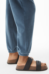 winter blue high-waisted stretch corduroy pants with side pockets and an elastic logo waistband - relaxed fit/li> - full-length/li> - elasticized ankles/li> - model is 5'10" and wears size s - 57% cotton / 40% polyester / 3% elastane - made in china - 4cc1204024469 composition BD 100.0%: 62.0%COT/36.0%PL/2.0%EA