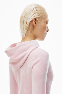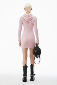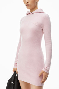 a stacked logo at the chest elevates this light pink hoodie minidress, cut in a bodycon fit. - pulls over - long sleeves, sweater rib trim - body composition: 49% viscose/49% polyamide/2% elastane - trim: 55% polyamide/43% viscose/2% elastane - trim 2: 50% viscose/49% polyamide/1% elastane - made in china - model is 5'9" and wears a size s - 4kc4243014680 composition Body/Exterieur: 49%VISCOSE/49%POLYAMIDE/2%ELASTANE TRIM 1: 55%POLYAMIDE/43%VISCOSE/2%ELASTANE TRIM 2: 50%VISCOSE/49%POLYAMIDE/1%ELASTANE
