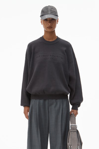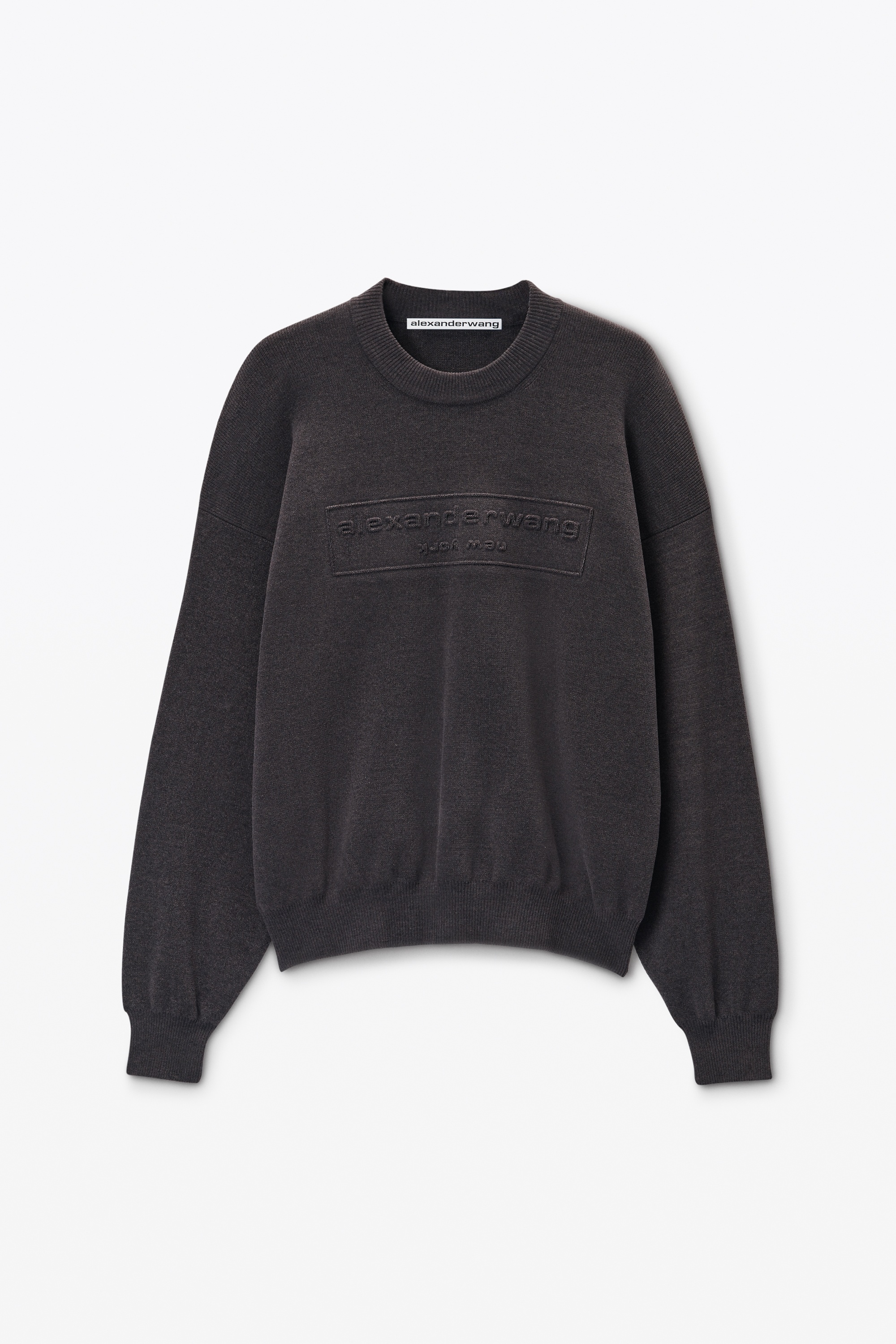 Crafted of plush ribbed chenille, this grey oversize sweater spotlights an embossed logo at the front. - crewneck - oversize fit - hits at the hip - body composition: 89% polyester/9% polyamide/2% elastane - trim: 80% polyester/18% polyamide/2% elastane - model is 5'9" and wears a size s - made in china - 1KC3231017020 composition Body/Exterieur: 89%POLYESTER/9%POLYAMIDE/2%ELASTANE Rib: 80%POLYESTER/18%POLYAMIDE/2%ELASTANE