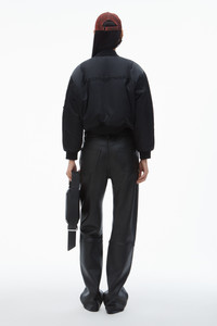 Crystal hotfix illuminates this slim-fit shirt with a black wash that reveals veining and a creased design. - mockneck - body composition: 100% polyamide - lining: 100% viscose - made in china - model is 5'10" and wears a size s - 1WC1253278001 composition Body/Exterieur: 100%POLYAMIDE Lining: 100%VISCOSE Rib: 89%COTTON/10%POLYESTER/1%ELASTANE Filling: 100%POLYESTER