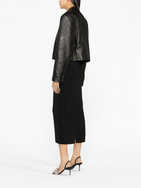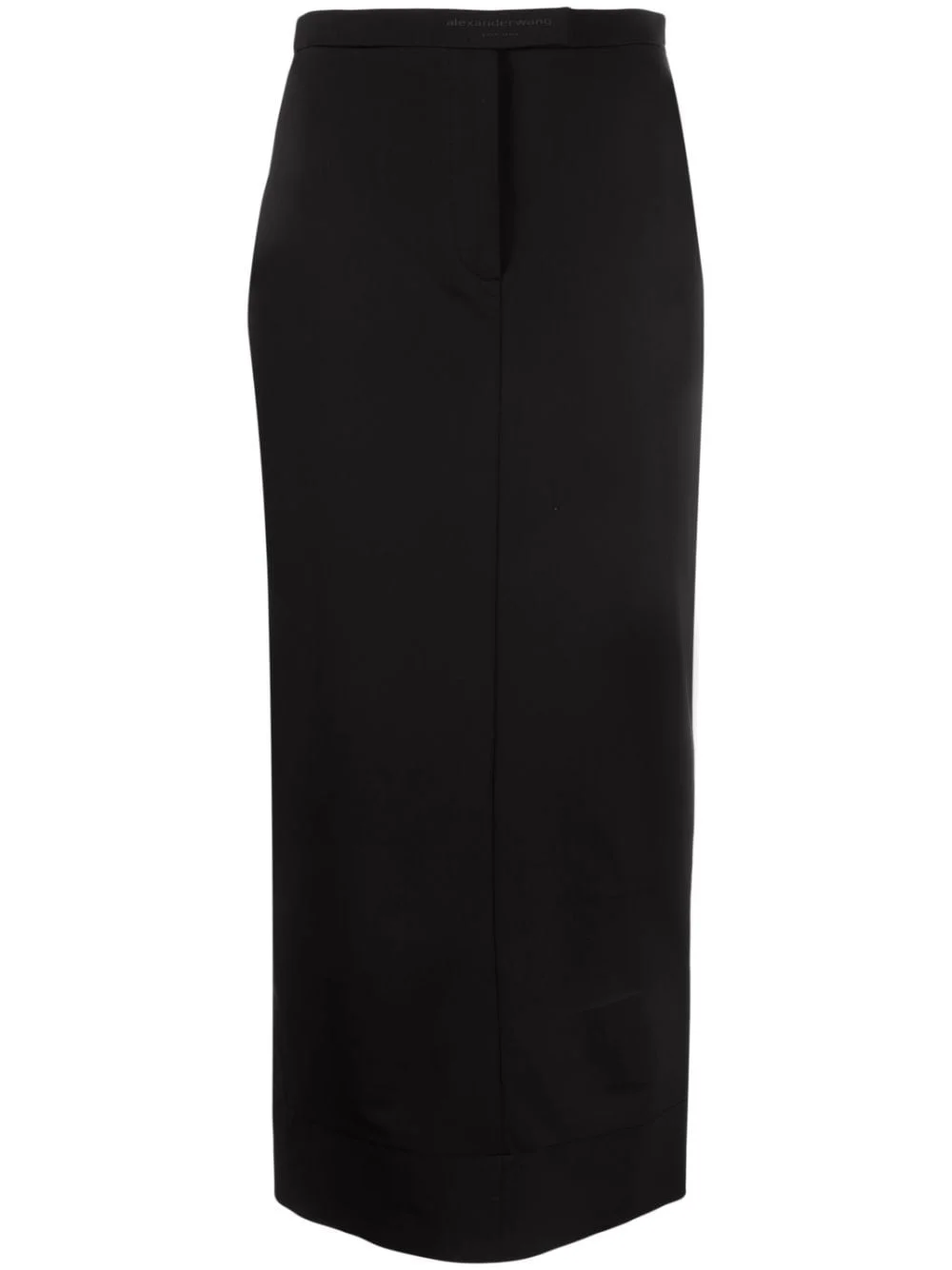 logo-embroidered pencil skirt Alexander Wang knows how to elevate a minimal silhouette, and this midi skirt is a prime example. Decorated with an embroidered logo on the waistband, it sits high on the waist and falls to a pencil style. Highlights - Black - Pencil design - Embroidered logo to the front - High waist - Concealed front fastening - Rear slit - Mid-length Imported Composition Polyamide 82%, Spandex/Elastane 18% SIZE & FIT Model measurements Height 5 ft 10 in(1.77 m) Bust/Chest 32.67 in(83 cm) Hips 35.43 in(90 cm) Waist 23.62 in(60 cm) FittingInformation This maxi-length skirt is intended to be worn high on the waist The partially elasticated waistband offers increased movement and comfort at the waist Made from a midweight stretch fabric, this piece offers elasticity and flexibility when worn This piece fits true to size – take your usual size Measurement HIPS 32 in(81.3 cm) LENGTH 35.51 in(90.2 cm) WAIST 25 in(63.5 cm) Washing instructions Machine Wash