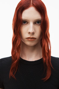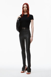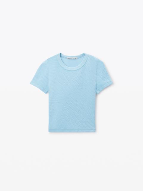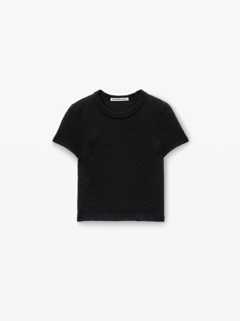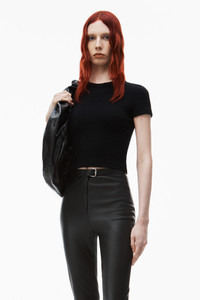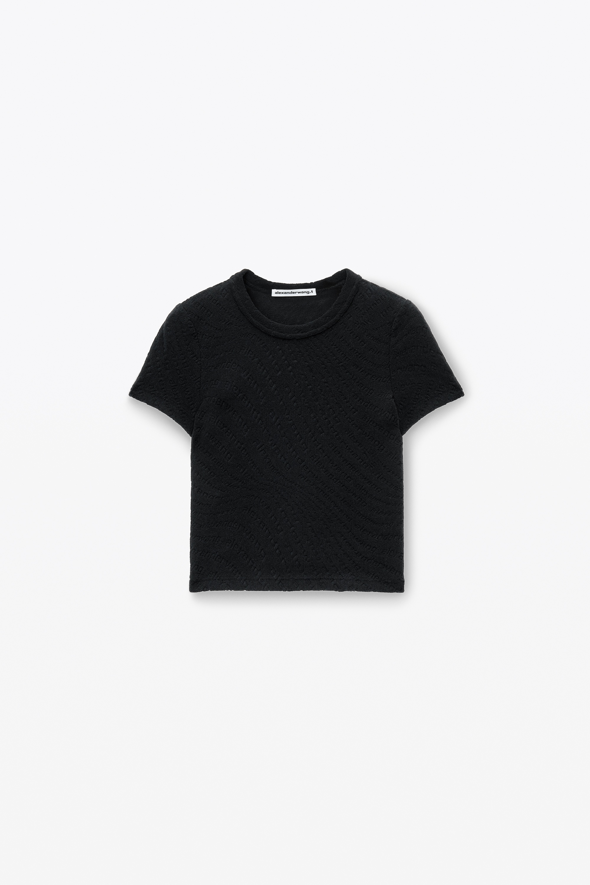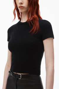 Black logo jacquard short sleeve baby tee cut in a crewneck silhouette. - tight fit - hits at waist - unlined - composition: 97% polyamide/3% elastane - made in china - model is 5'11" and wears size s - 4CC1241426001 composition Body: 97%POLYAMIDE/3%ELASTANE