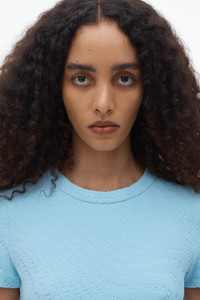 Logo jacquard patterning defines this crewneck minidress in sky blue. - crewneck - pulls over - hits at upper thigh - body composition: 97% polyamide/3% elastane - model is 5'9" and wears a size s - made in china - 4CC1246235444 composition Body/Exterieur: 97%POLYAMIDE/3%ELASTANE