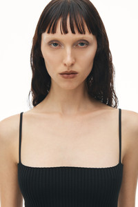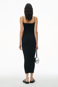 With a 4x4 rib knit creating a dynamic textural appeal, this dress hugs and flatters the form. The bodycon silhouette is detailed with a high-density alexanderwang logo at the left for an elevated appeal. - cami neckline - integrally knit straps - composition: 81% polyester, 17% polyamide, 2% elastane - made in china - bodycon fit - model is 5’11 and wears a size XS - 1KC2246011001 composition Body/Exterieur: 81%POLYESTER/17%POLYAMIDE/2%ELASTANE