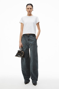 Crafted of organic cotton jersey and finished with rib-knit trim, this shrunken short-sleeve tee in white features a printed stacked logo at the center. - crewneck - long sleeve - body composition: 100% cotton - trim: 100% cotton - shrunken relaxed fit - made in China - model is 5'8" and wears a size S - 4CC3241521100 composition Body: 100%COTTON Rib: 100%COTTON