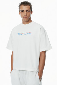 An "alexanderwang athletics" logo defines jersey T-shirt in white. - crewneck - short-sleeves - pulls over - body composition: 100% cotton - trim: 99% cotton/1% elastane - made in Portugal - female model is 5'10" and wears a size s - male model is 6’0" and wears a size m - UCC2251835120 composition Body: 100%COTTON Rib 1: 99%COTTON/1%ELASTANE