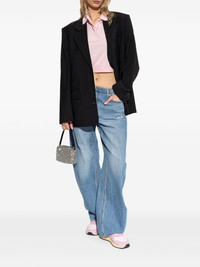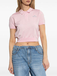 logo-print polo shirt Highlights - Pink - Front button placket - Short sleeves - Ribbed cuffs and hem - Straight hem Made in United States Composition Viscose 74%, Polyamide 21%, Elastane 5%