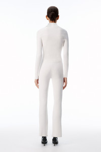 a bootleg pant featuring debossed logo and track stripe detailing. clean lines with a relaxed, elongated silhouette. - white - body composition: 100% cotton - model is 5'11" and wears a size s - made in china - 1KC2264082001 composition Body/Exterieur 100.0%: 59%VISCOSE/38%POLYAMIDE/3%ELASTANE TRIM/GARNITURE/BORD 100.0%: 66%POLYESTER/31%POLYAMIDE/3%ELASTANE RIB TRIM/FINITIONBORDCOTE 100.0%: 61%VISCOSE/38%POLYAMIDE/1%ELASTANE