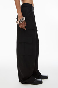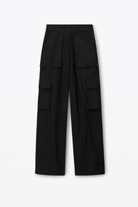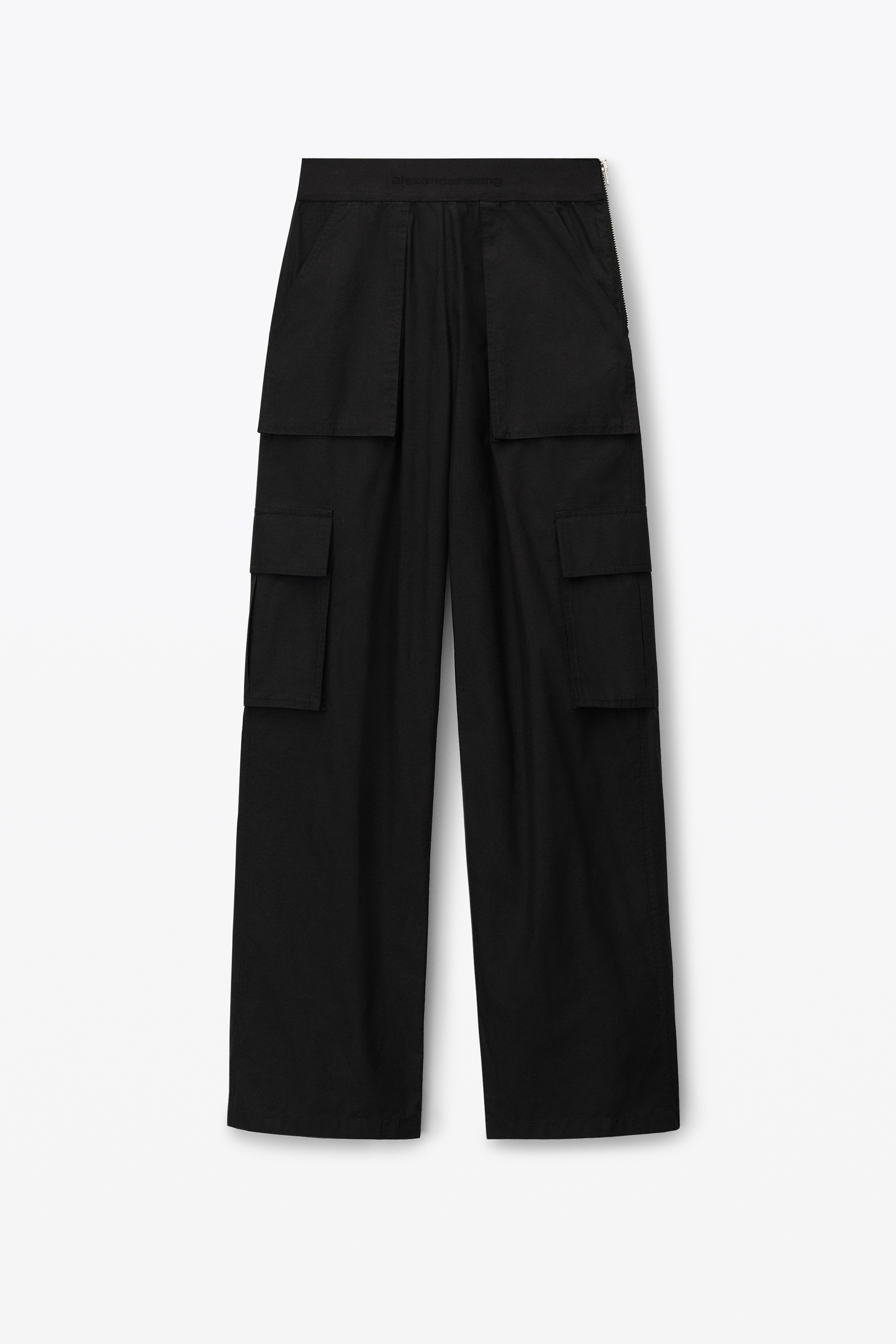 Black baggy raver-inspired pant in lightweight ripstop fabric with classic cargo pocket details and logo elastic waistband - oversized fit - sits at hip - full length - unlined - metal zipper at side seams - military-inspired buttons hidden at flaps - composition: 60%COTTON/40%NYLON - made in china - model is 5'9" and wears size 2 - 1WC1244686001 composition Body: 60%COTTON/40%NYLON Elastic: 50%NYLON/41%POLYESTER/9%ELASTANE