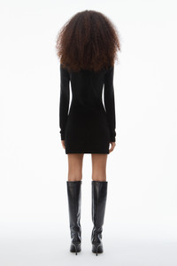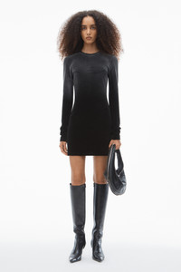 Long-Sleeve Minidress in Plush Velour