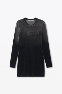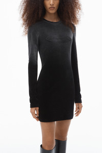 Crafted of plush velour, this minidress features a specialized ombre-effect wash and is finished with an embossed dome logo at the chest. - round neckline - pulls over - his at mid thigh - body-hugging fit - body composition: 80% cotton/19%polyester/1%elastane - model is 5'9" and wears a size s - made in portugal - 4CC1256300024B composition Body/Exterieur: 80%COTTON/19%POLYESTER/1%ELASTANE