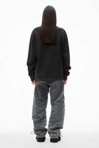long-sleeve unisex crewneck tee with printed logo at chest in high twist jersey in black acid wash finish - relaxed fit - bottom hem hits at low hips - composition: 100% cotton - made in china - model is 5'11" and wears size s - UCC3221537007