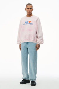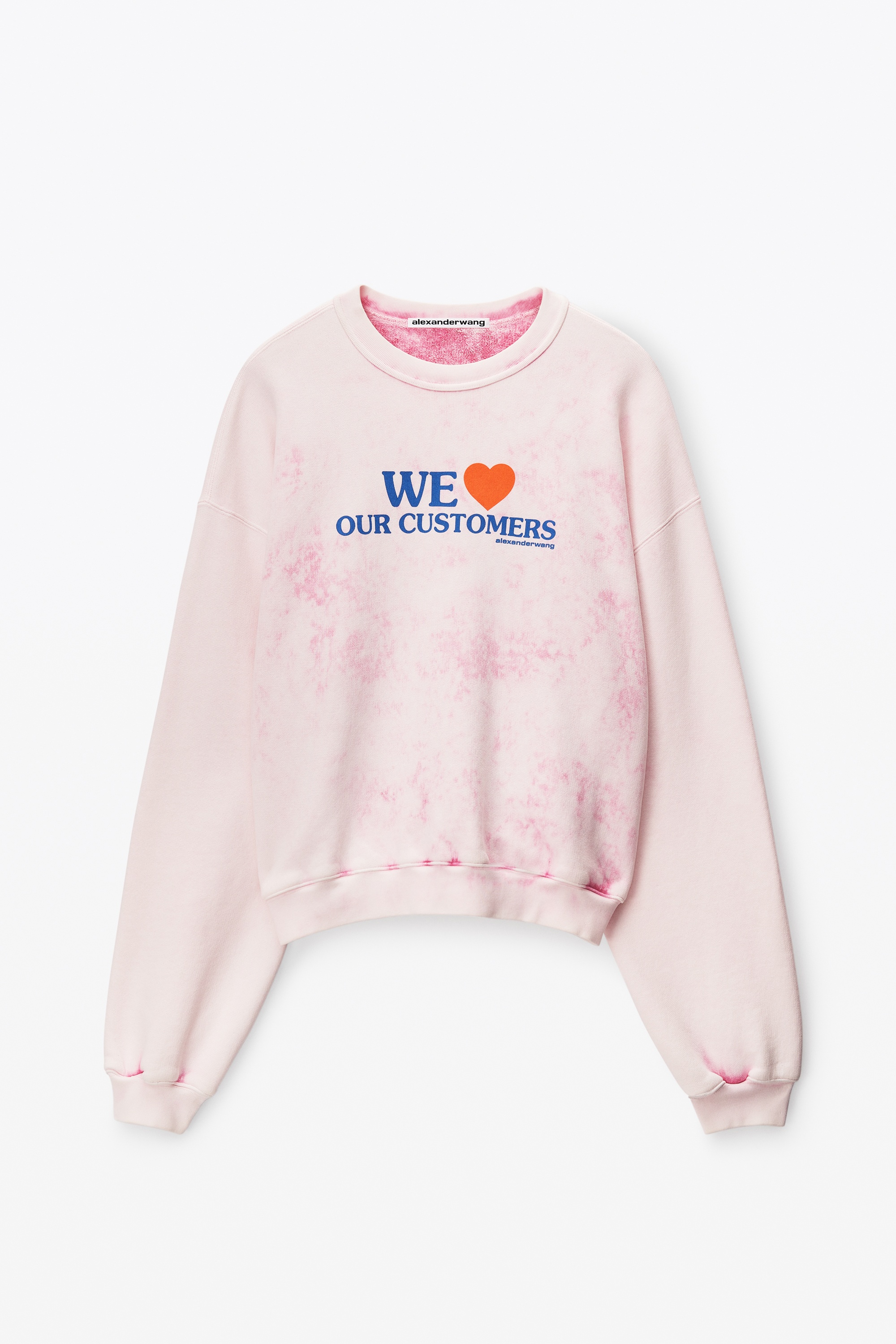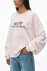 Emblazoned with a "we love our customers" graphic print at the front, this light pink long-sleeve sweatshirt is crafted in unbrushed terry for a soft, lightweight feel. It's overdyed and treated with a bleached wash, giving each sweatshirt its unique characteristics. - this garment is overdyed and treated with a bleach wash which means no two garments are exactly the same - body composition: 100% cotton - rib composition: 99% cotton, 1% elastane - made in portugal - unisex fit - female model wears size s - male model wears size m - UCC2241688683A composition Body/Exterieur: 100%COTTON Rib 1/Tricot Cotele: 99%COTTON/1%ELASTANE