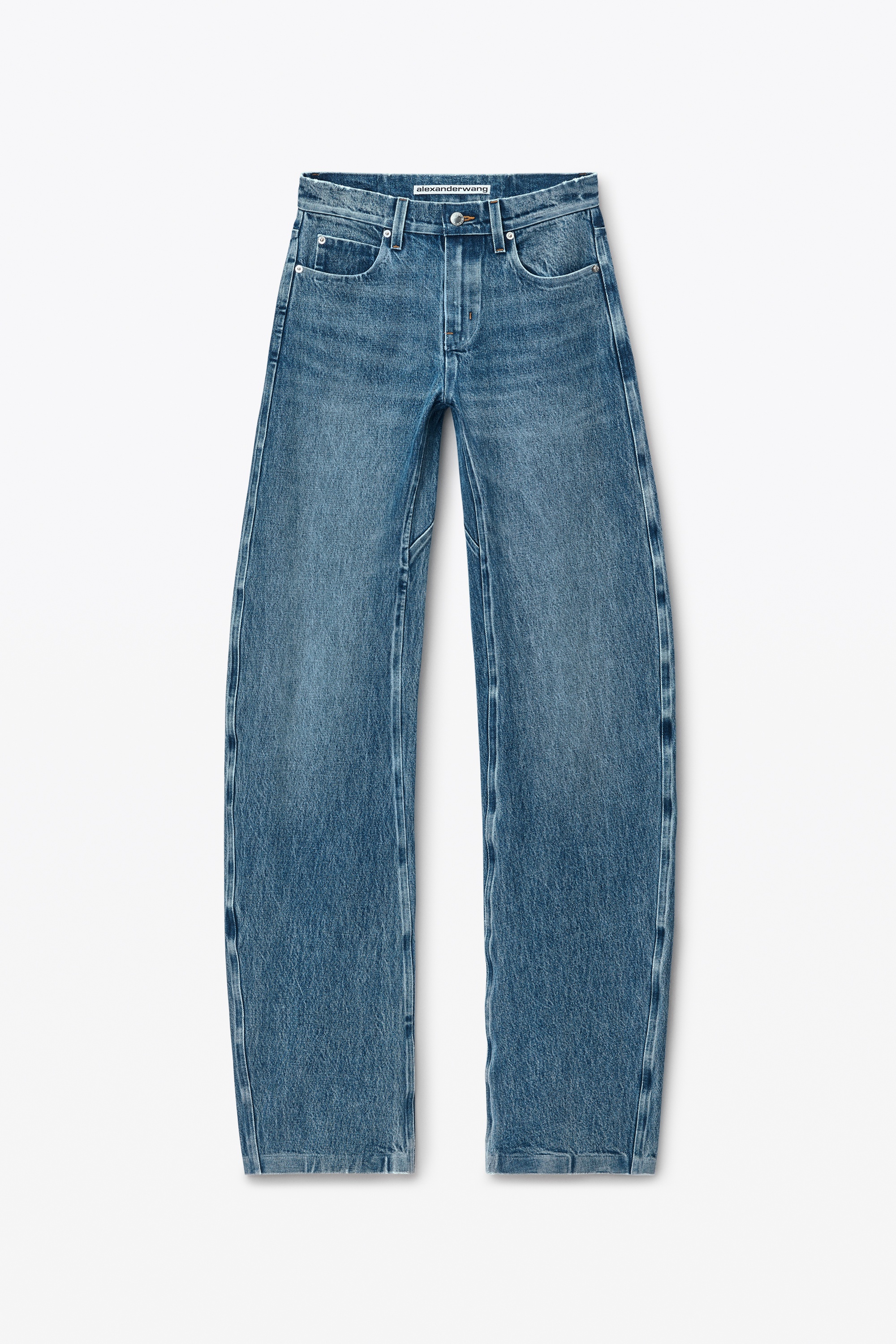Cut in a low-rise fit with a bowed-leg design, these jeans showcase a medium indigo wash and are detailed with five-pocket styling. Bonded seams create a sleek look, while a logo patch at the back punctuates this cotton denim style. - belt loops - five-pocket style - zip fly, button closure - body composition: 100% cotton - model is 5'10.5" and wears a size 27 - made in china - 1WC1254599473 composition Body/Exterieur: 100%COTTON