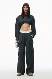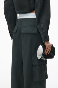 Cargo pockets enhance this rave pant in black peached cotton twill for an extra soft feel. This mid-rise cargo style is cut with a relaxed leg and fastened by a logo elastic waistband. - metal zip at side seam - body composition: 100% cotton - - material 2: 62% nylon/27% polyester/11% elastane - made in china - model is 5’10 and wears a size XS - 1WC2244724012A composition Body/Exterieur: 100%COTTON Elastic/Elastique: 62%NYLON/27%POLYESTER/11%ELASTANE