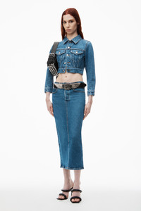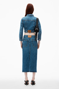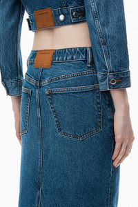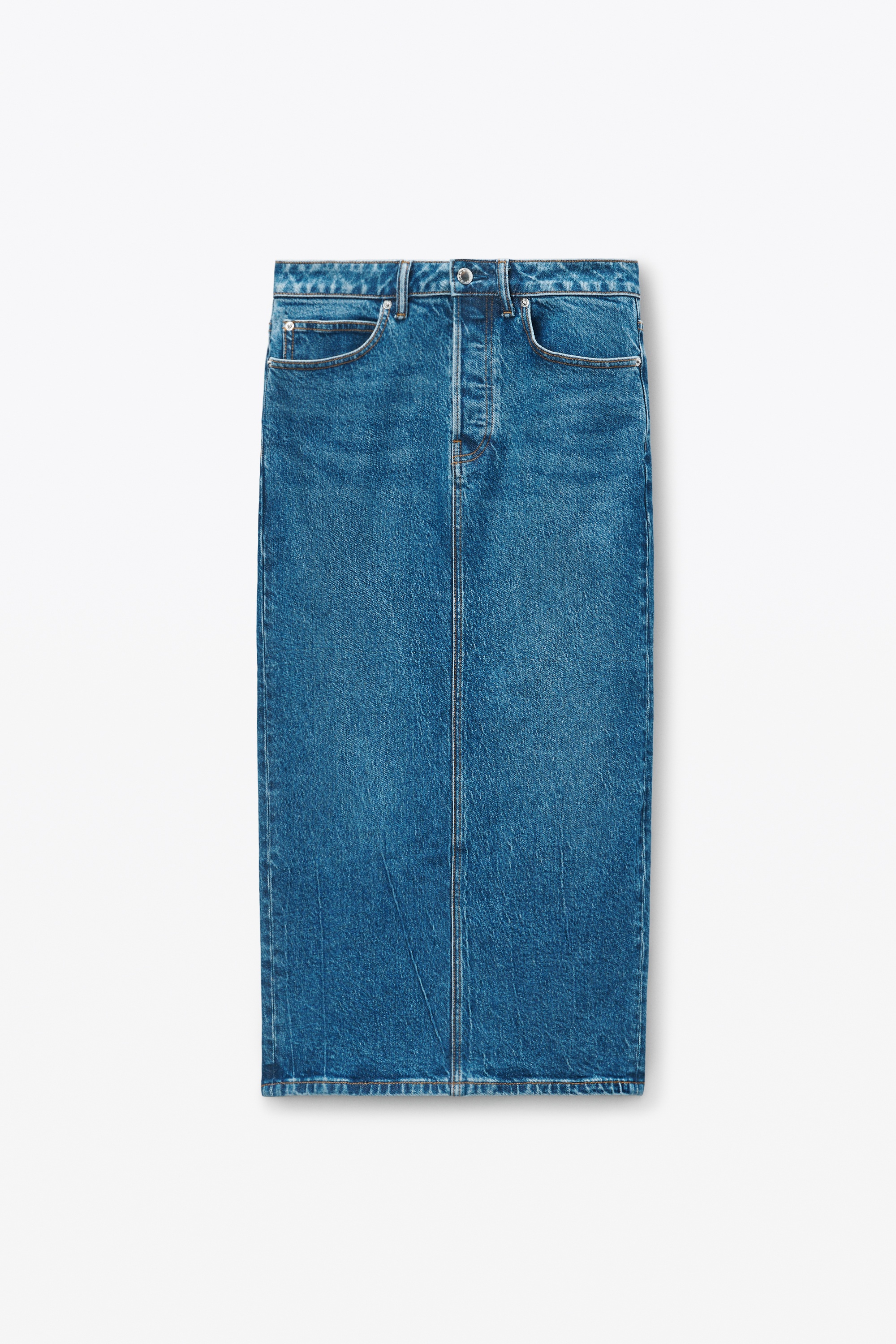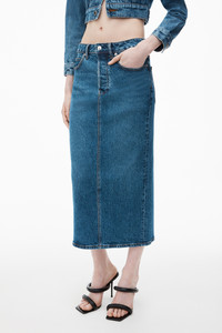 Crafted of comfort stretch denim, this midi skirt is styled with five-pocket styling. - belt loops - zip fly, button closure - body composition: 55% cotton/44% lyocell/1% elastane - oversize fit - made in China - model is 5’11 and wears a size 27 - 4DC3245459401 composition Body: 55%COTTON/44%LYOCELL/1%ELASTANE