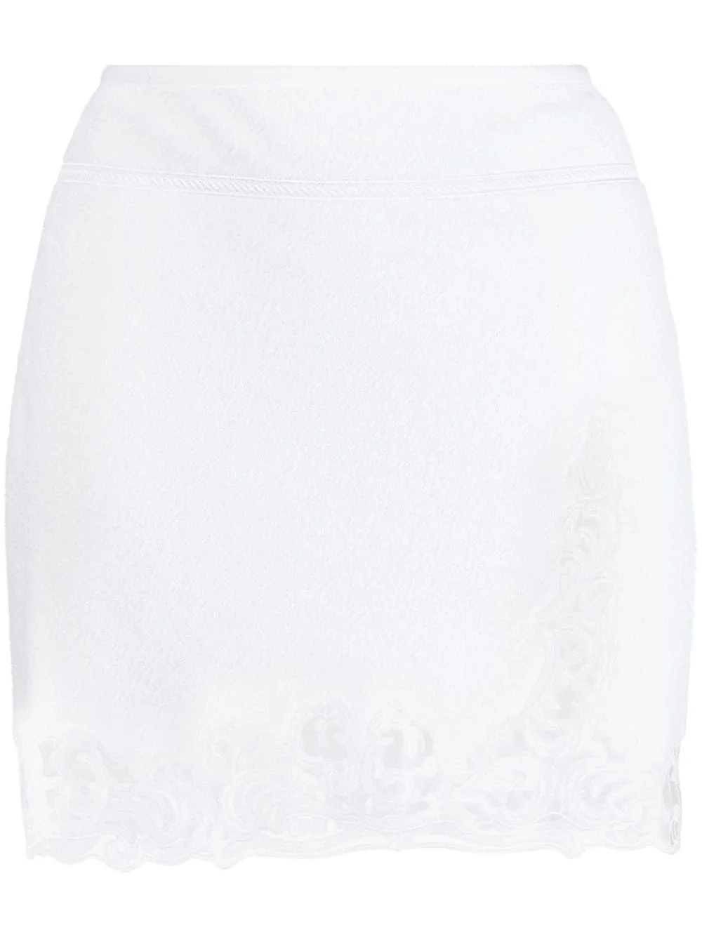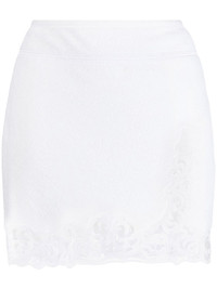 corded-lace high-waist skirt Highlights - Milk white - Silk - Corded lace - Rear zip fastening - Thigh-length - Straight hem Imported Composition Body: Cotton 100% Trims: Polyester 100%, Silk 100% SIZE & FIT Model measurements Height 5 ft 10 in(1.77 m) Bust/Chest 31.49 in(80 cm) Hips 35.43 in(90 cm) Waist 25.19 in(64 cm) FittingInformation This mini-length skirt is intended to be worn high on the waist Slightly short in length; consider your own measurements Made from a midweight non-stretch fabric, this piece offers minimal elasticity when worn This piece fits close in all sizes – take your usual size Washing instructions Dry Clean Only