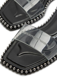 clear-strap flat sandals Highlights - Black - Clear strap - Ballchain embellishment - Flat sole - Square toe - Leather upper Made in Italy Composition Sole: Rubber 100% Lining: Calf Leather 100% Outer: Polyurethane 100%