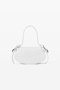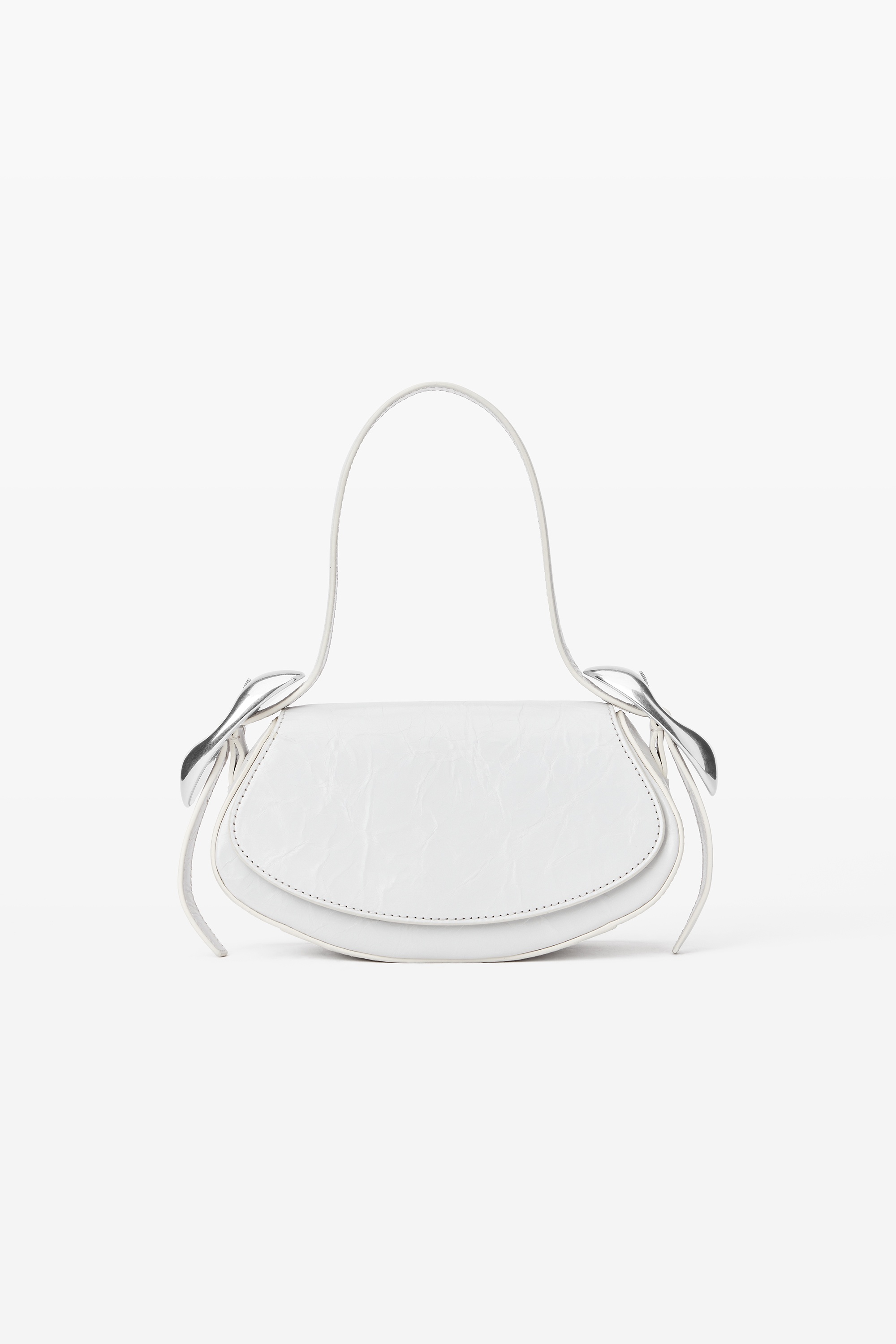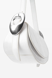 Constructed of crackle patent leather, this small white flap bag features sculpted dual buckles at the strap and is finished with an embossed logo at the front. It is lined in suede and fastens with an internal magnetic snap closure. - single top handle - magnetic flap closure - body composition: 100% cow leather - lining: 100% cow leather - dimensions: 20 x 13 x 9 cm - handle drop: 15 cm - 20324K50L100 - made in China composition Body: 100%COW LEATHER Lining: 100%COW LEATHER