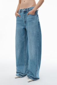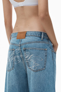 These vintage indigo low-rise jeans feature twisted seams, creating an articulated leg and rounded silhouette. Logo-detailed crystal hotfix back pockets elevate this denim style, which also includes belt loops, a five-pocket design, and a zip fly with a button closure. - belt loops - five-pocket design - zip fly, button closure - body composition: 100% cotton - model is 5'10.5" and wears a size 27 - made in china - 4DC1254611486 composition Body/Exterieur: 100%COTTON