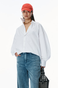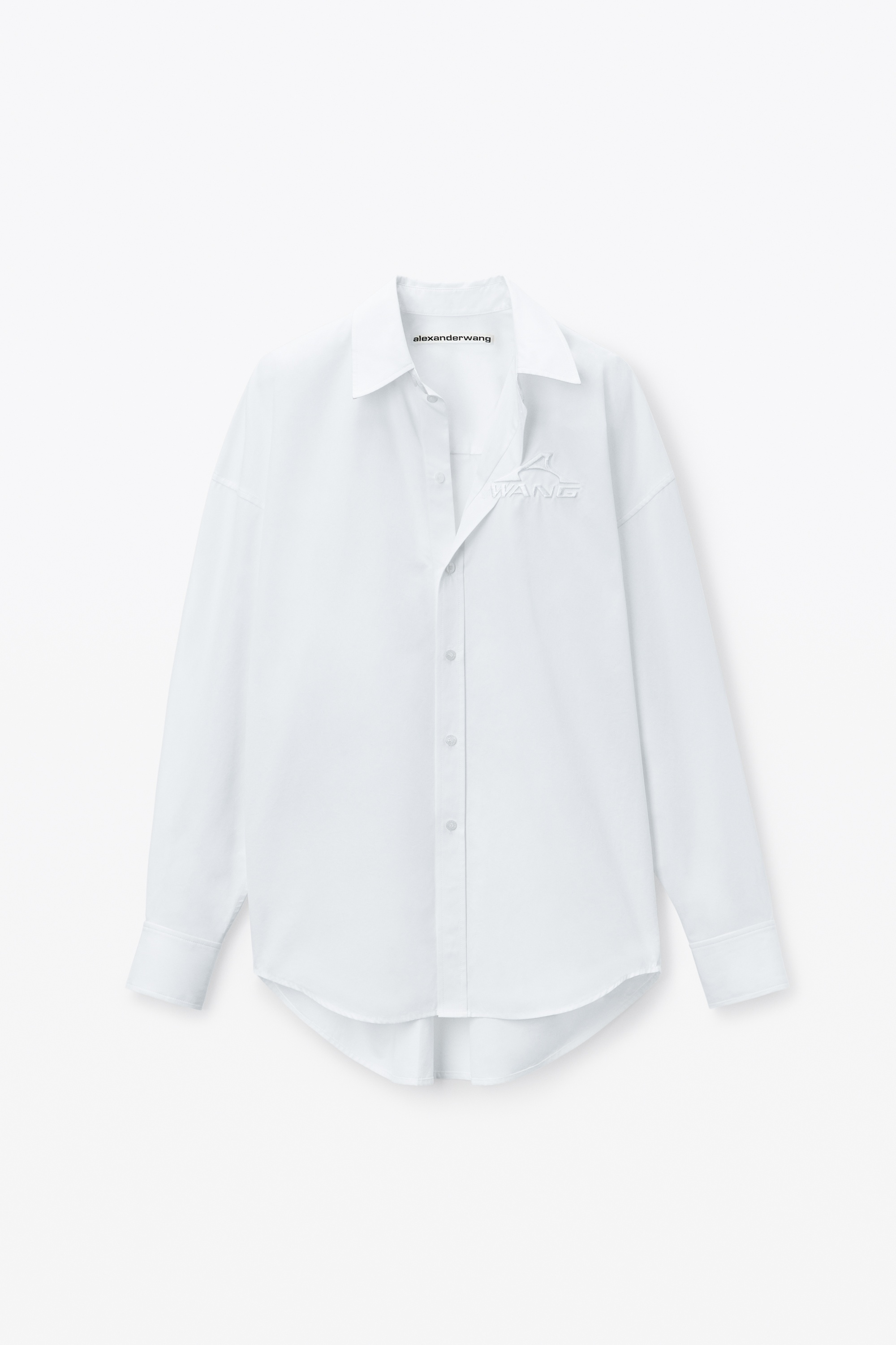 Menswear details like a drop shoulder and box-pleated cuffs inform the masculine feel of this white shirt in organic cotton. Logo embroidery at the chest and placket elevate this oversized style. - point collar - button placket - oversize fit, hits at waist - body composition: 100% cotton - made in china - model is 5'10" and wears a size s - 1WC2251040100 composition Body: 100%COTTON