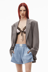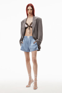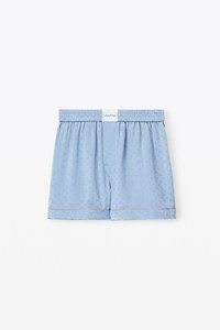 pull on boxer short with contrast piping in custom alexander wang paisley blue bells silk - relaxed fit - hem hits at mid thigh - alexander wang script logo embroidered on boxer label - hidden fly button - slash side pockets - composition: 100% silk - made in china - model is 5' 11" and wears a size s - 4WC3234376463A composition 100%SILK