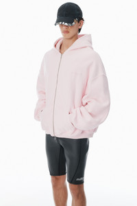 This light pink zip-up cotton terry hoodie features layered graphics at the back, complemented by a logo pull and chest embroidery. - hood - long sleeves - two-way zip closure - kangaroo pockets - body composition: 100% cotton - trim: 99% cotton/1% elastane - made in portugal - model is 6'1" and wears a size m - UCC3252065680 composition Body: 100%COTTON Rib: 99%COTTON/1%ELASTANE