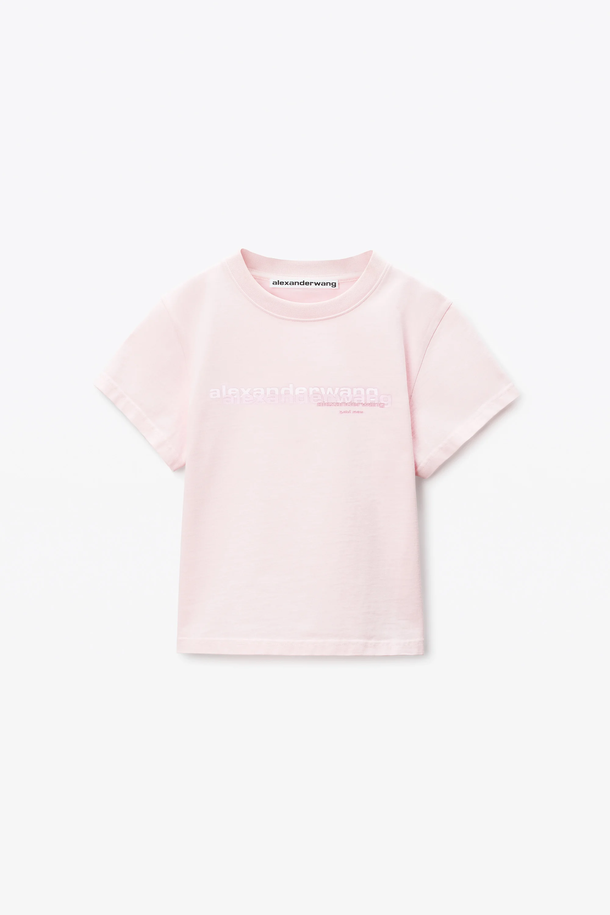 A distressed logo print with embroidered detailing defines this shrunken cotton tee in light pink. - crewneck - short sleeves - body composition: 100% cotton - trim: 99% cotton/1% elastane - made in Portugal - model is 5'11" and wears a size s - 1CC3251103680 composition Body: 100%COTTON Rib: 99%COTTON/1%ELASTANE