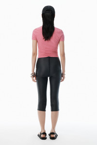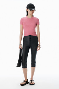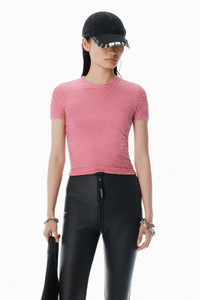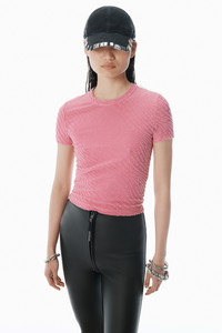 allover logo jacquard complements the plush terrycloth fabrication of this shrunken baby tee in lotus. - crewneck - cap sleeves - button placket - body composition: 96% polyester/4% elastane - made in china - model is 5'11" and wears a size s - 4CC3251097957 composition Body: 96%POLYESTER/4%ELASTANE