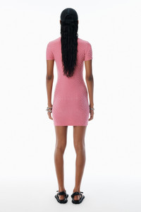 Allover logo jacquard animates this shrunken minidress in lotus pink. - crewneck - short sleeves - hits at thigh - body composition: 96% polyester/4% elastane - made in china - model is 5'11" and wears a size s - 4CC3256827957 composition Body: 96%POLYESTER/4%ELASTANE