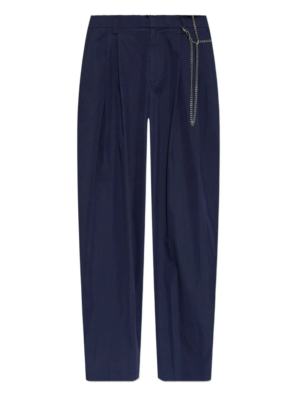 pleated chain-detail trousers Highlights - Navy blue - Pleated design - Chain detail - High waist - Welt pockets Imported Composition Cotton 74%, Polyamide 26% Washing instructions Read Manufacturer Guidelines