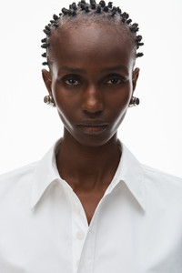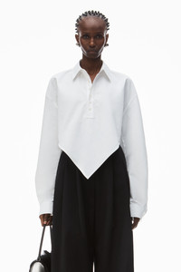 a pointed hem exaggerates this cropped casual-fit shirt, detailed with curved sleeves, a tower placket, and a logo flag tag at the back. crafted of white organic cotton, this tailoring separate reflects the collection's angular severity and keen-edged femininity. - shirt collar - decorative placket, pullover style - 100% cotton - dry clean - made in china - model is 5'11" and wears a size s - 1wc4241943100 composition Body/Exterieur: 100%COTTON