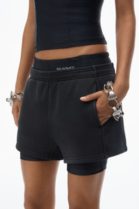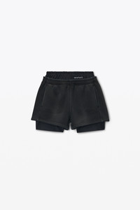 Brand signatures like the pre-styled layered bike short and logo detailing lend a sense of elevated nuance to this cotton sweat short in a faded black wash. - elastic waistband - side seam pockets - body composition: 100% cotton - trim: 78% nylon/22% elastane - model is 5'9" and wears a size s - made in portugal - 4CC1254407011 composition Body/Exterieur: 100%COTTON Trim: 78%NYLON/22%ELASTANE